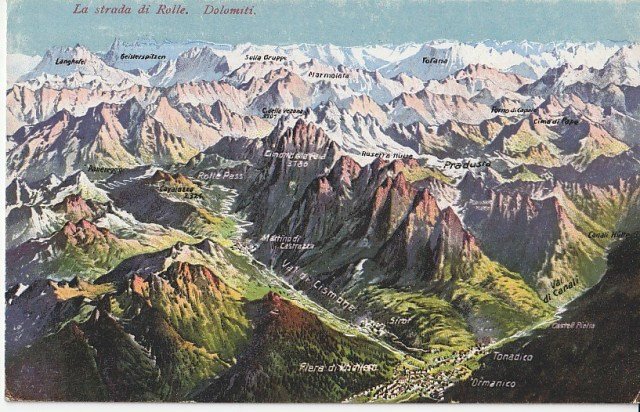 - [CARTOLINA- CARTA GEOGRAFICA- DOLOMITI -STRADA ROLLE].