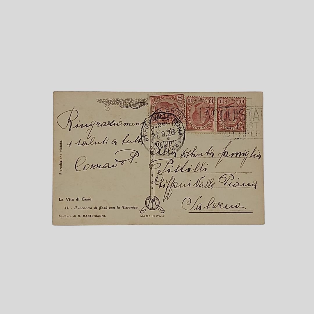 Cartolina d’epoca. Viaggiata, cm 8,6X13,5. Francobolli, timbri (21/9/1928). In buone condizioni. Serie N. 41
