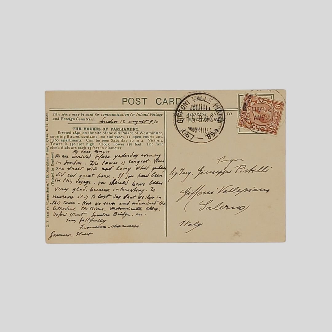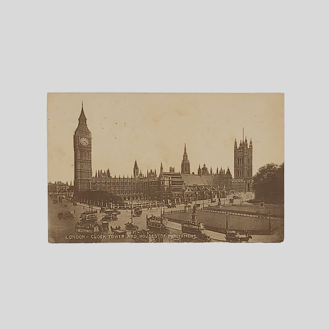 Cartolina fotografica d’epoca virata in seppia. Leyton, C.F. Castle’s “Lesco Series”. Viaggiata, cm 13,7×8,7. Francobollo, timbri (15/8/1930). Molto animata, autobus, automobili, carrozze, cavalli.