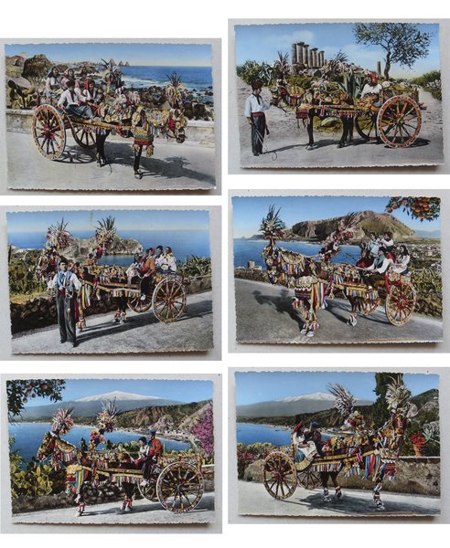 Lotto 6 cartoline "CARRETTO SICILIANO" Ed.Stefano Vitrò Catania. Anni´50. Foto ritoccata a mano.