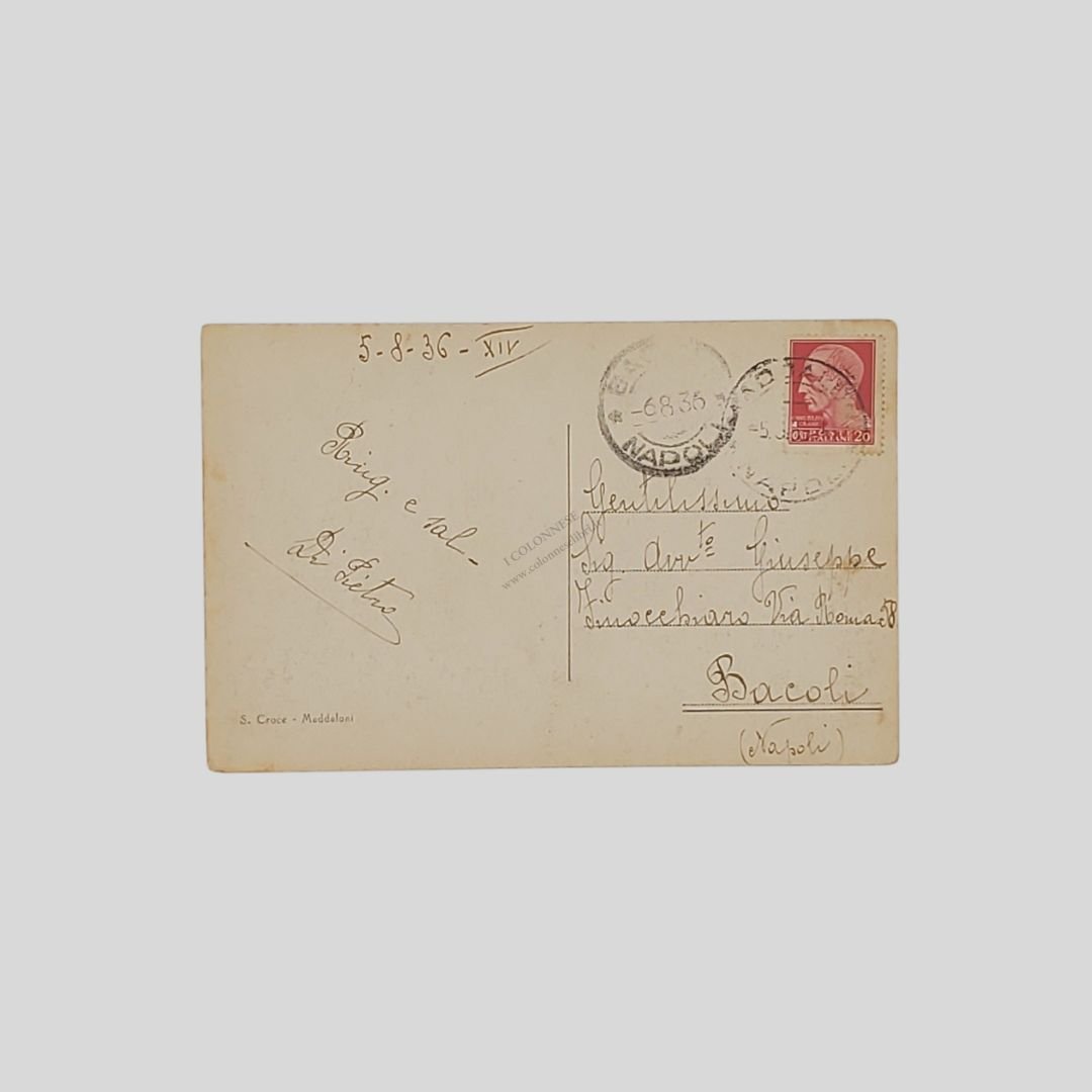 cm 14x9. Cartolina d’epoca. Viaggiata, 5/8/1936. Francobollo, timbri. Tracce d’uso agli angoli. Animata.
