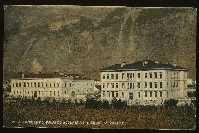 Mezolombardo. Palazzo scolastico e dell'I.R Giudizio.