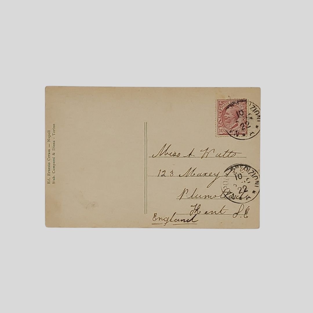 cm 13,5x9. Cartolina viaggiata, francobollo, doppio timbro postale. In buone condizioni.