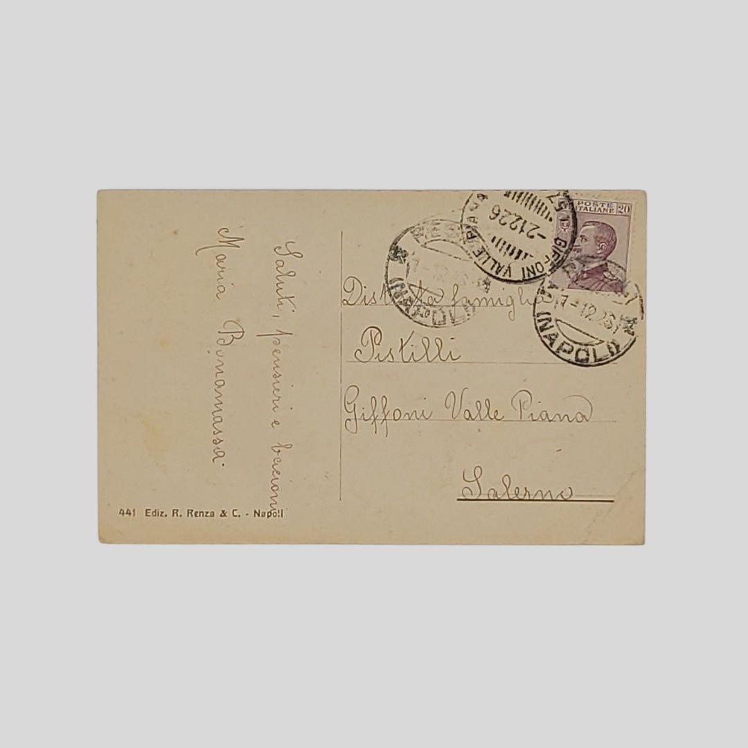 cm cm 13,5x8,8. Cartolina a colori originale viaggiata, timbri, francobollo, postalizzata il 21/12/1926. Tracce d'uso agli angoli.