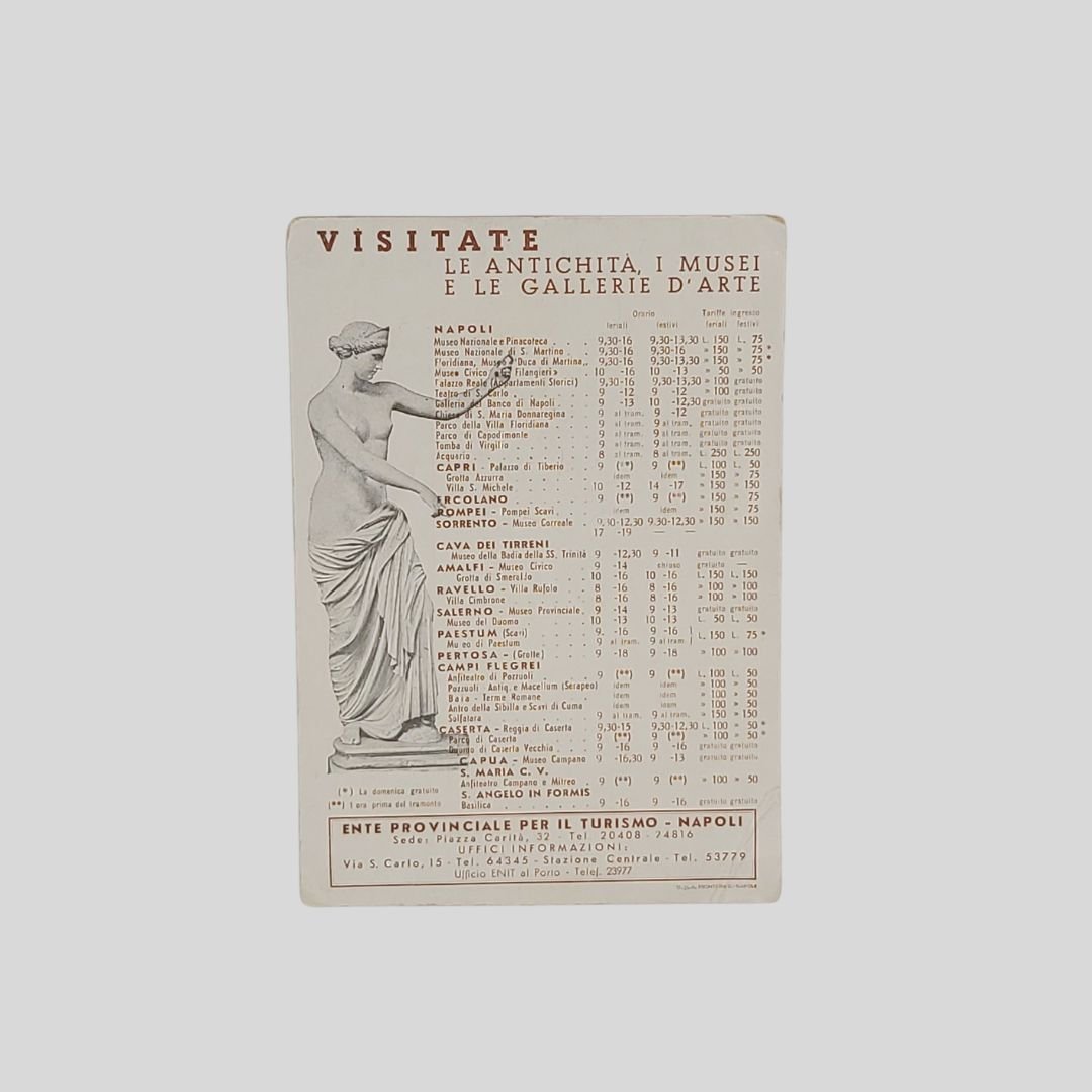 cm 10,5x15. Cartolina originale. Tracce d’uso, angoli sciupati. Ente Provinciale per il Turismo Napoli.