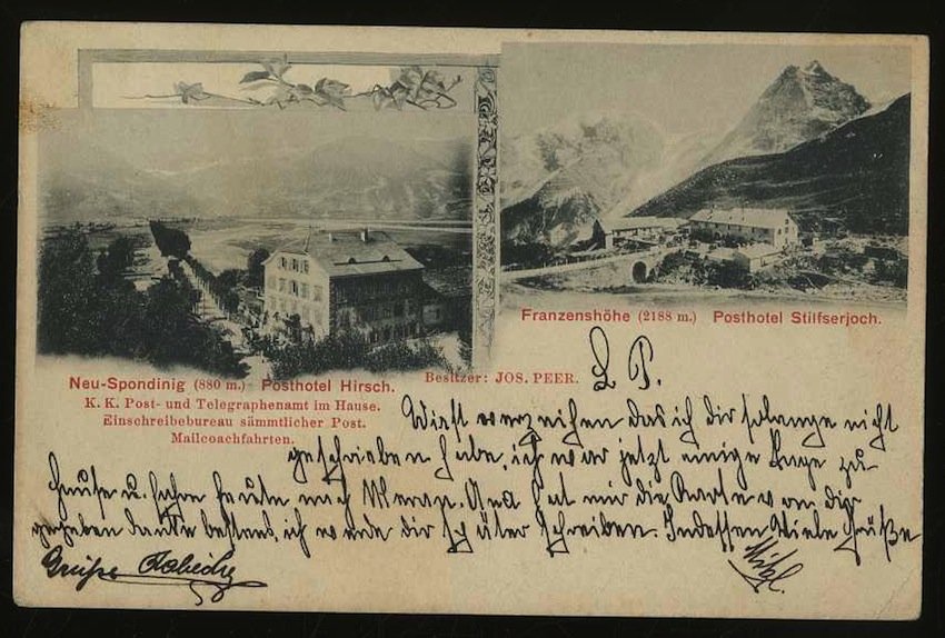 Neu-Sponding (880 m). Posthotel Hirsch. Franzenshöhe (2188 m). Posthotel Stilfserjoch.