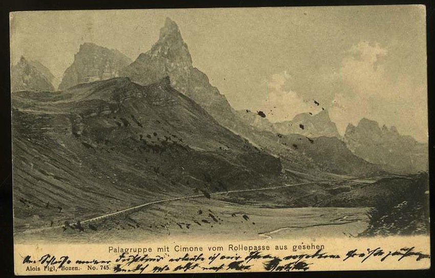 Cartolina in bianco e nero di misure 13,7x8,8 cm. Condizioni : USATO - Stato : Buono, ordinari segni d'uso e del tempo. Altre note : Viaggiata con francobollo e timbro di annullo di San Martino di Castrozza.
