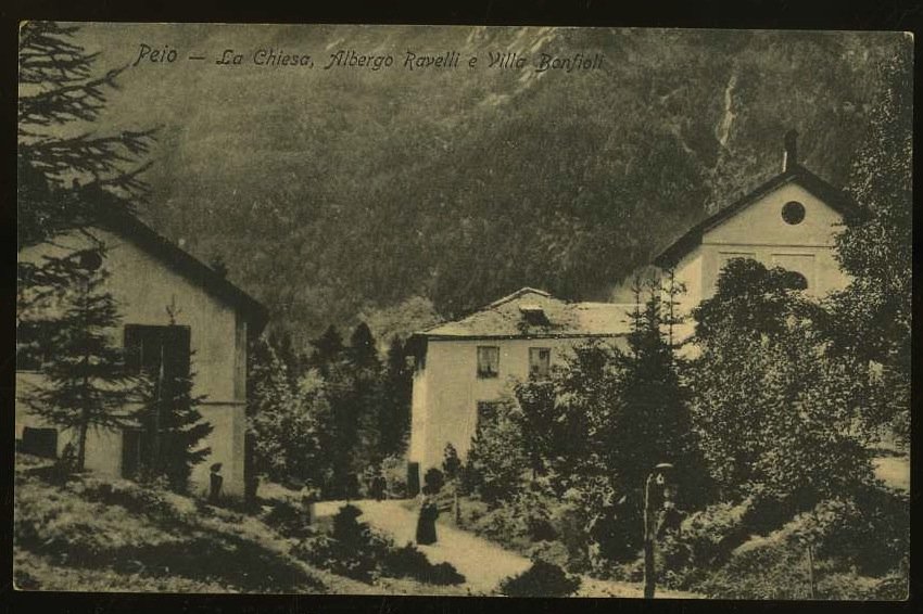 Peio. La Chiesa, Albergo Ravelli e Villa Bonfioli.