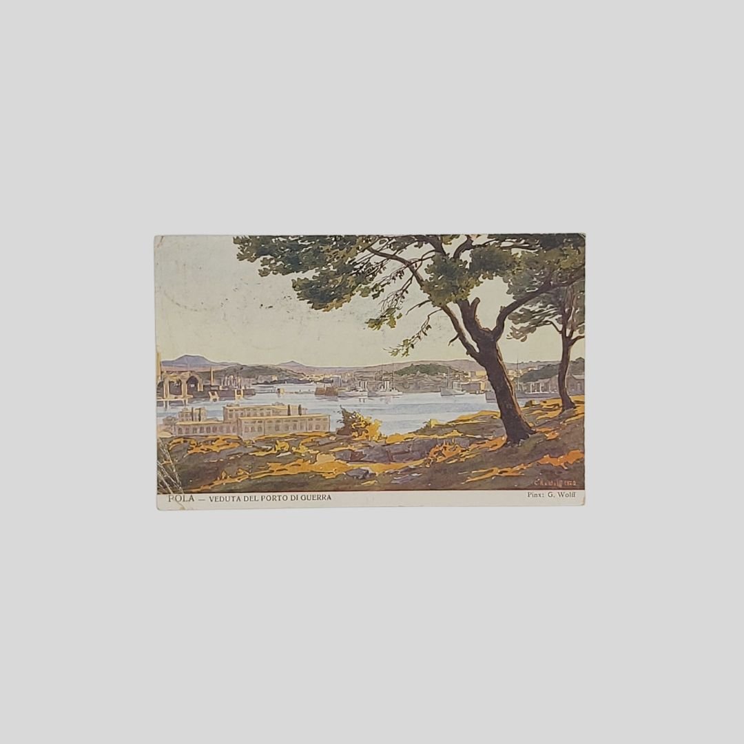 Cartolina d’epoca a firma Wolff . Viaggiata, 1920, cm 14×9. Timbri, francobolli. Tracce d’uso e piccoli strappi al margine sinistro.