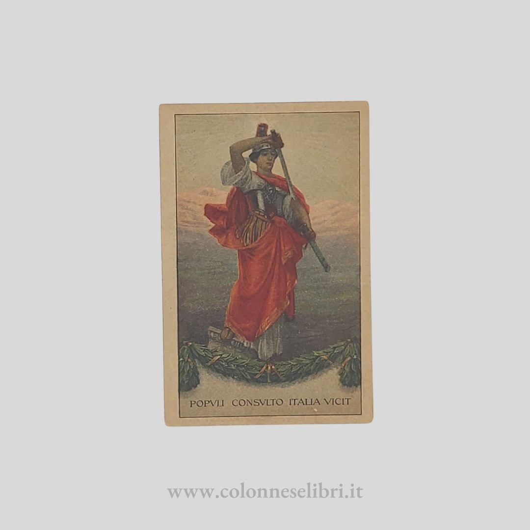 cm 9x14. Cartolina non viaggiata. In buone condizioni. Sottoscrivere oggi stesso alVI Prestito nazionale 5% netto. Il VI Prestito nazionale venne deliberato nel 1918 dopo la vittoria italiana sul Piave. Lo scopo del prestito era di recuperare le spese di guerra fino ad allora sostenute. La sottoscrizione venne avviata nel 1920, è dunque tra questi anni che va collocata la stampa della cartolina.