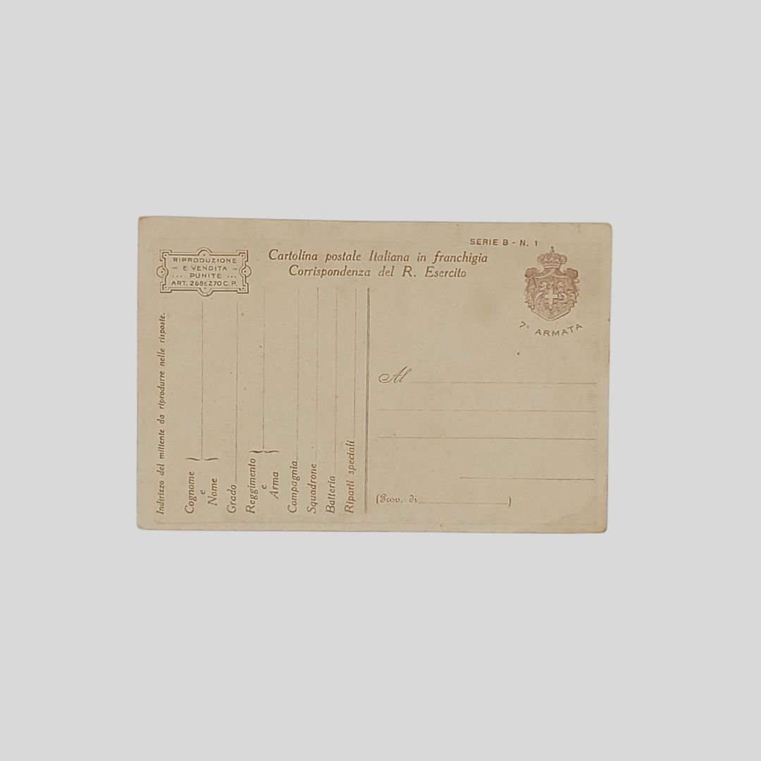 Cartolina in franchigia del R. Esercito. Non viaggiata, 1918, cm 9×14. In buone condizioni.