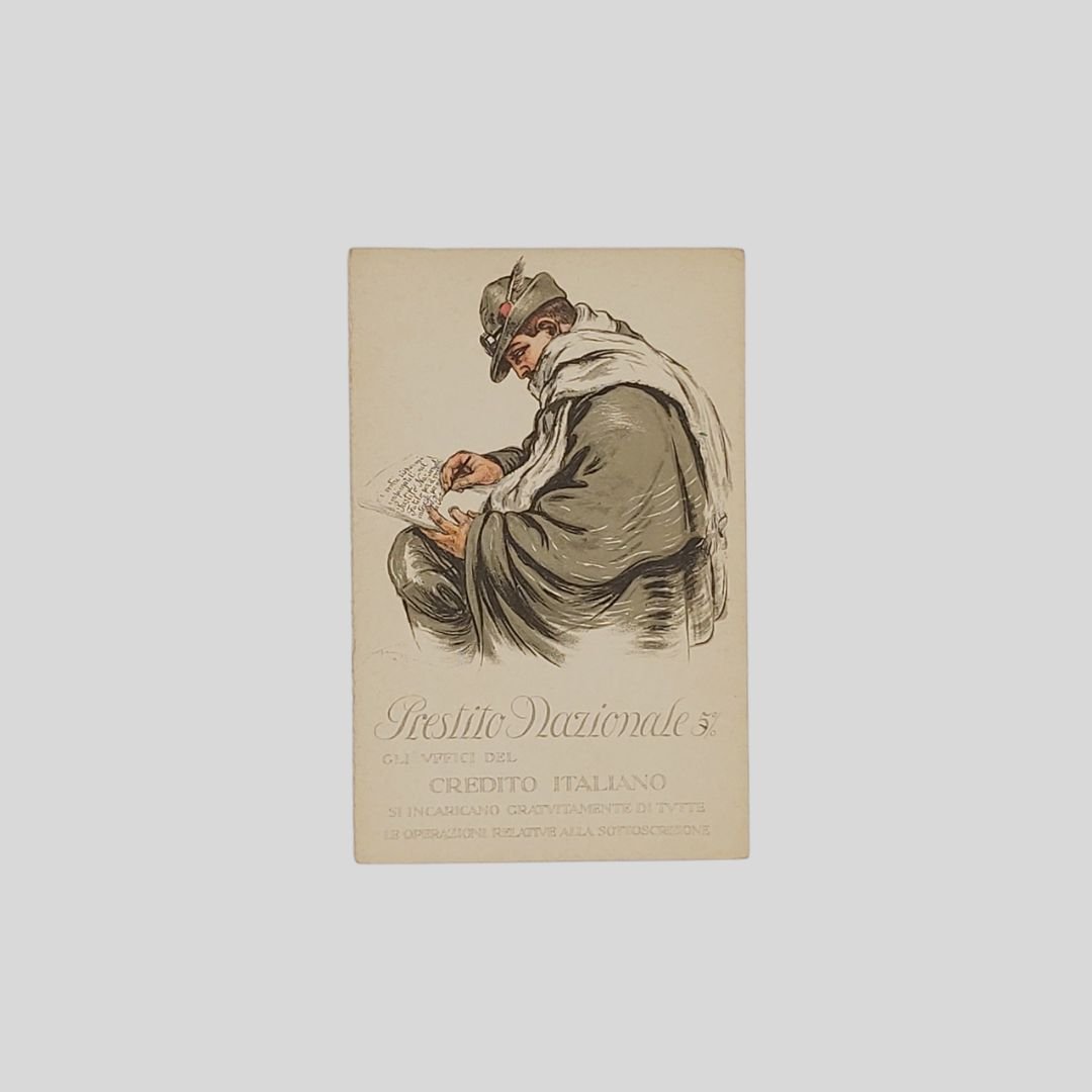 cm 9×14, Cartolina d'epoca. Non viaggiata. Insignificanti tracce d’uso all’angolo superiore. Gli Uffici del Credito Italiano si incaricano gratuitamente di tutte le operazioni relative alla sottoscrizione