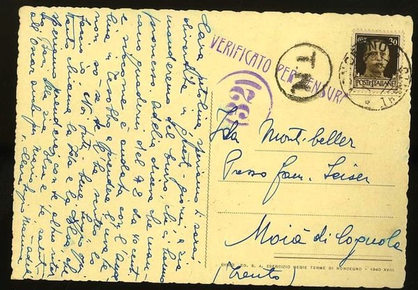 Cartolina in bianco e nero di misure 15x10,5 cm. Condizioni : USATO - Stato : Buono, ordinari segni d'uso e del tempo. Altre note : Viaggiata con francobollo e timbro di annullo di Roncegno.