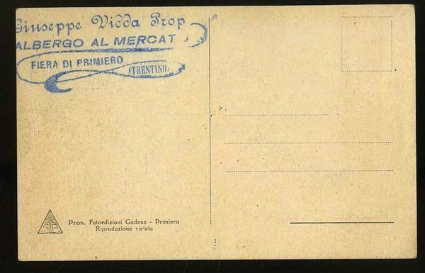 Cartolina fotografica a colori di misure 14x8,8 cm. Condizioni : USATO - Stato : Buono, ordinari segni d'uso e del tempo. Altre note : Non viaggiata. Presenta sul fronte l'indicazione della montagna: Cimone della Pala m. 3186.