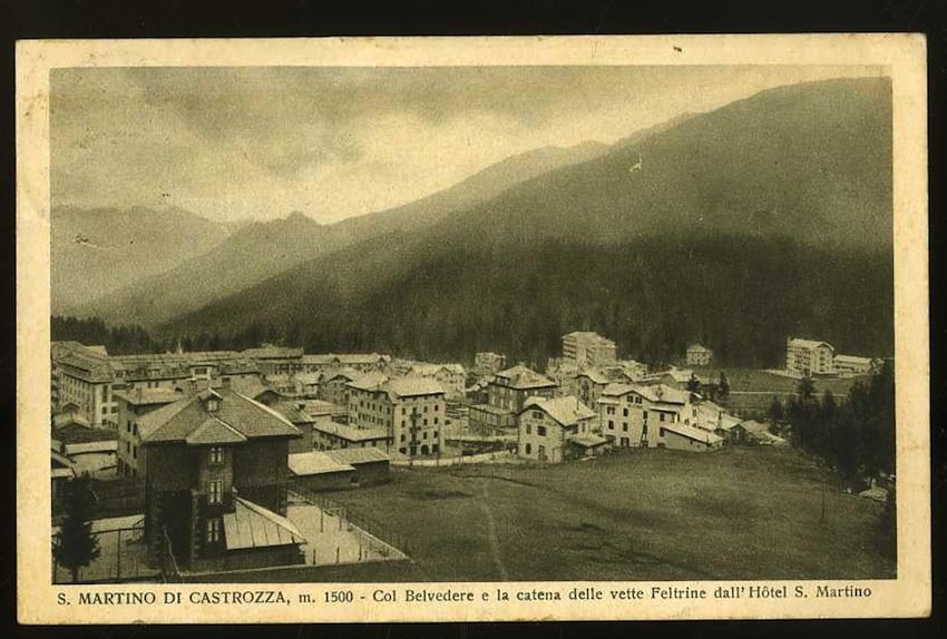 S.Martino di Castrozza m. 1500. Col Belvedere e la catena delle vette Feltrine dall'Hôtel S.Martino.