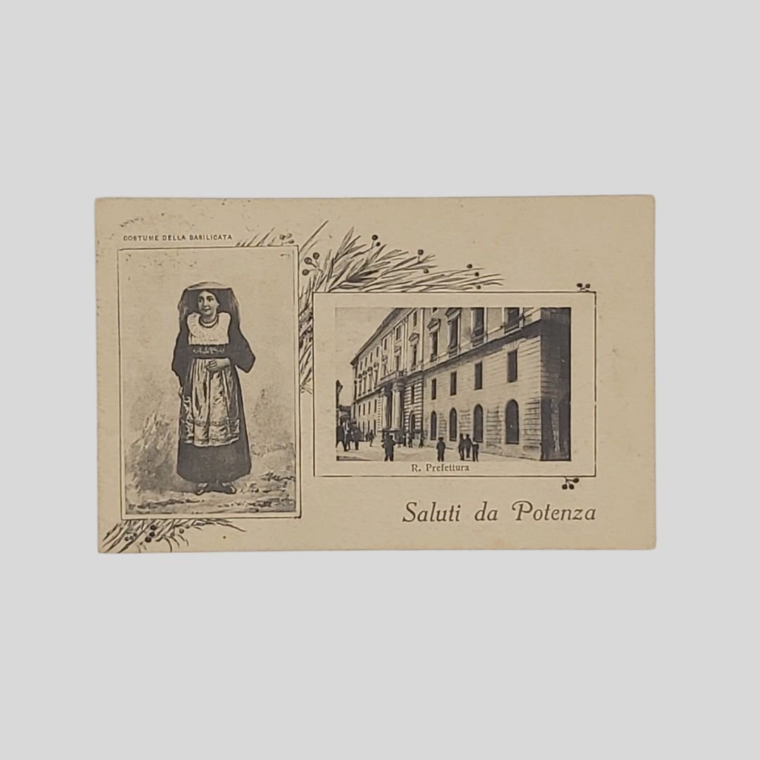 Saluti da Potenza. Prefettura. Costume della Basilicata.