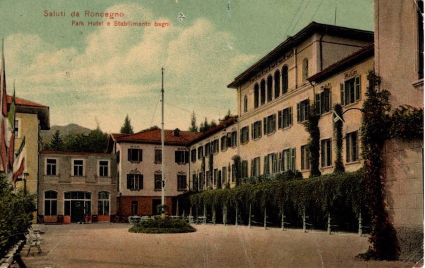 Saluti da Roncegno, Park Hotel e Stabilimento bagni.