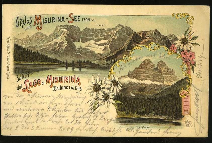 Saluti dal Lago di Misurina (Belluno) m. 1796.
