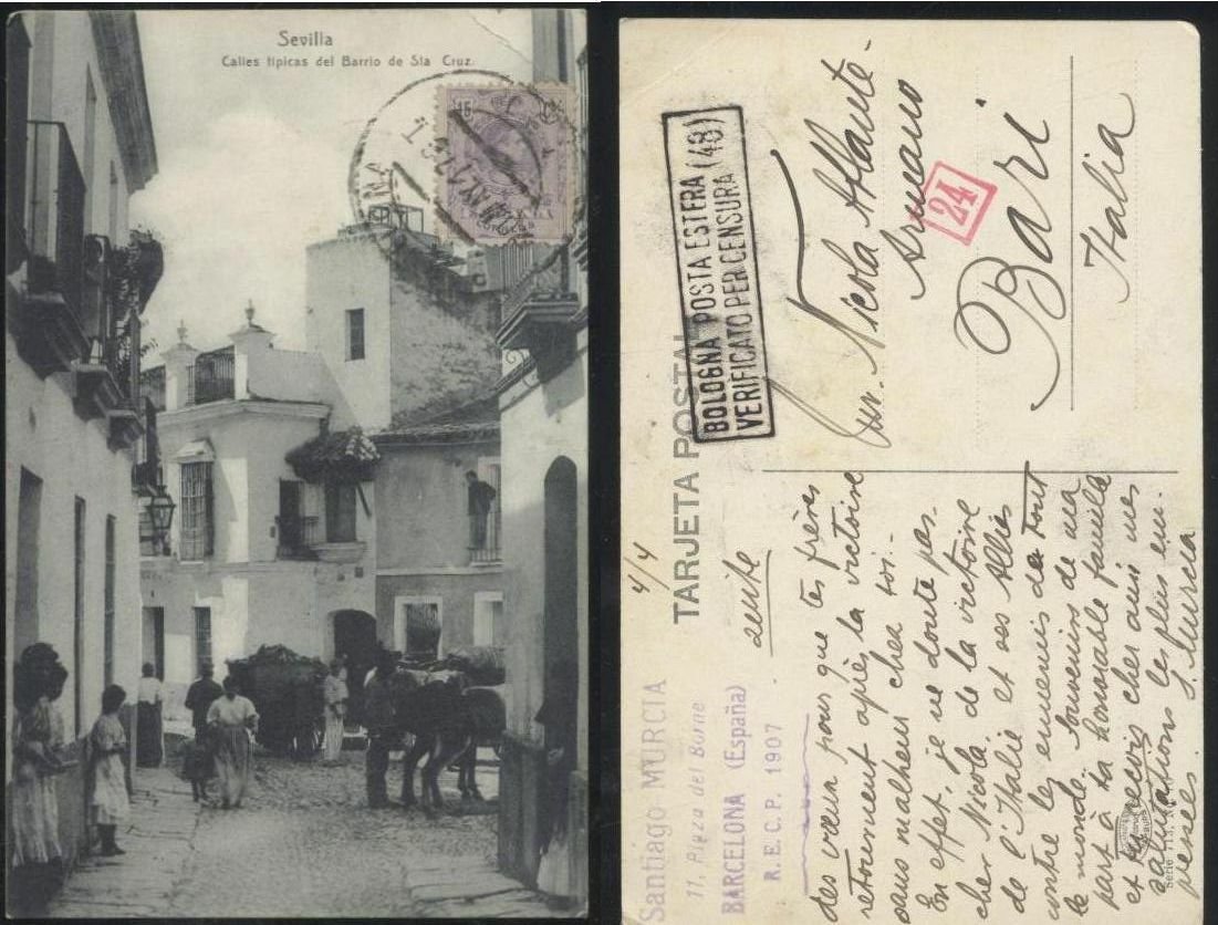 Sevilla calles tipicas del barrio de Sia Cruz viaggiata 1917 tarjeta postal