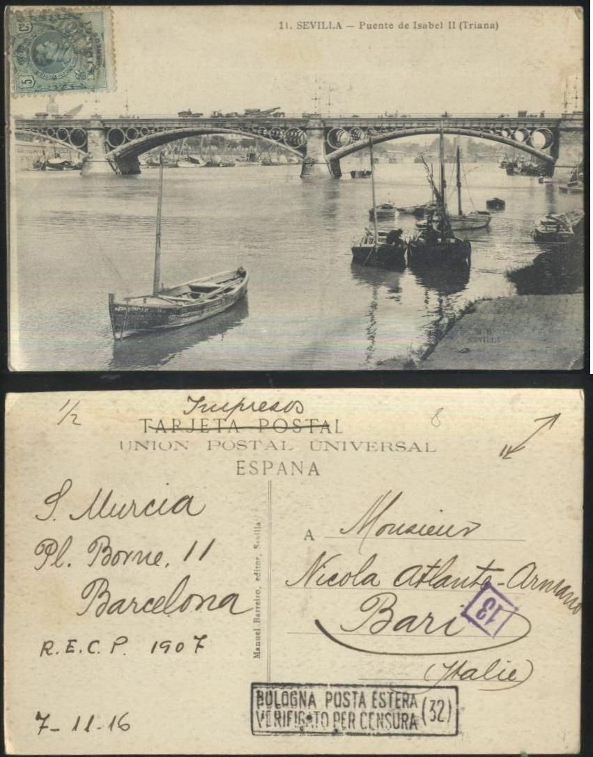 SEVILLA puente de Isabel II (Triana) 1916 postcard tarjeta postal Cartolina