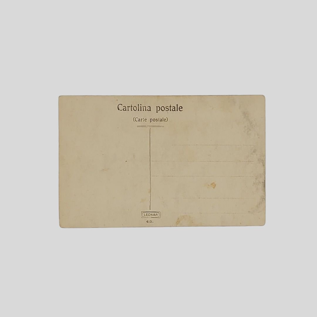 cm 13,3×8,5. Cartolina fotografica d’epoca. Non viaggiata. Tracce d’uso con forte piegatura all’angolo inferiore sinistro.