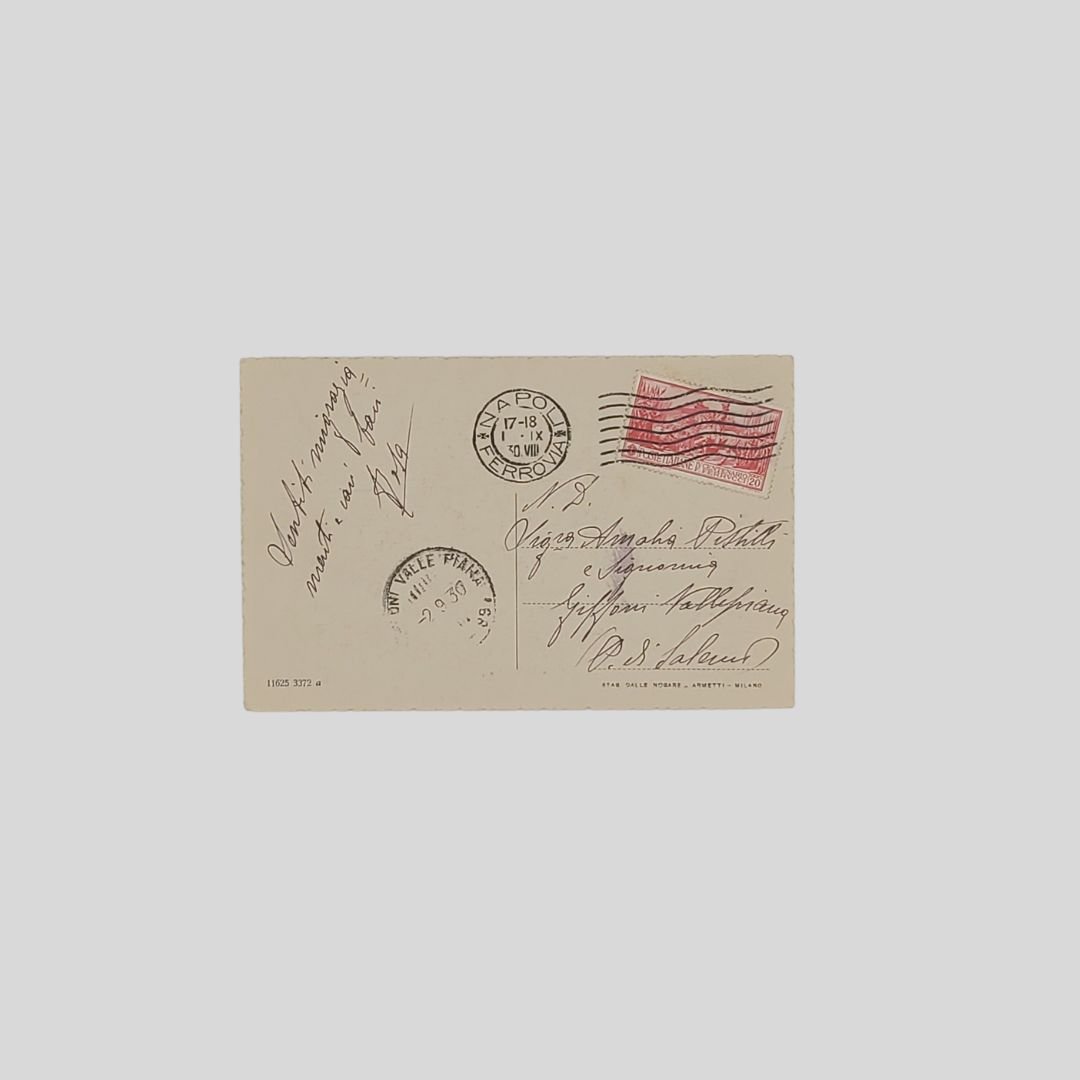 cm 14×9. Cartolina d’epoca, con bordi ondulati. Viaggiata. Francobollo, timbri (2/9/1930). In buone condizioni. Tratta da “Sonno” opera della pittrice francese Francine Charderon (1861-1928). Serie 11625 3372 a