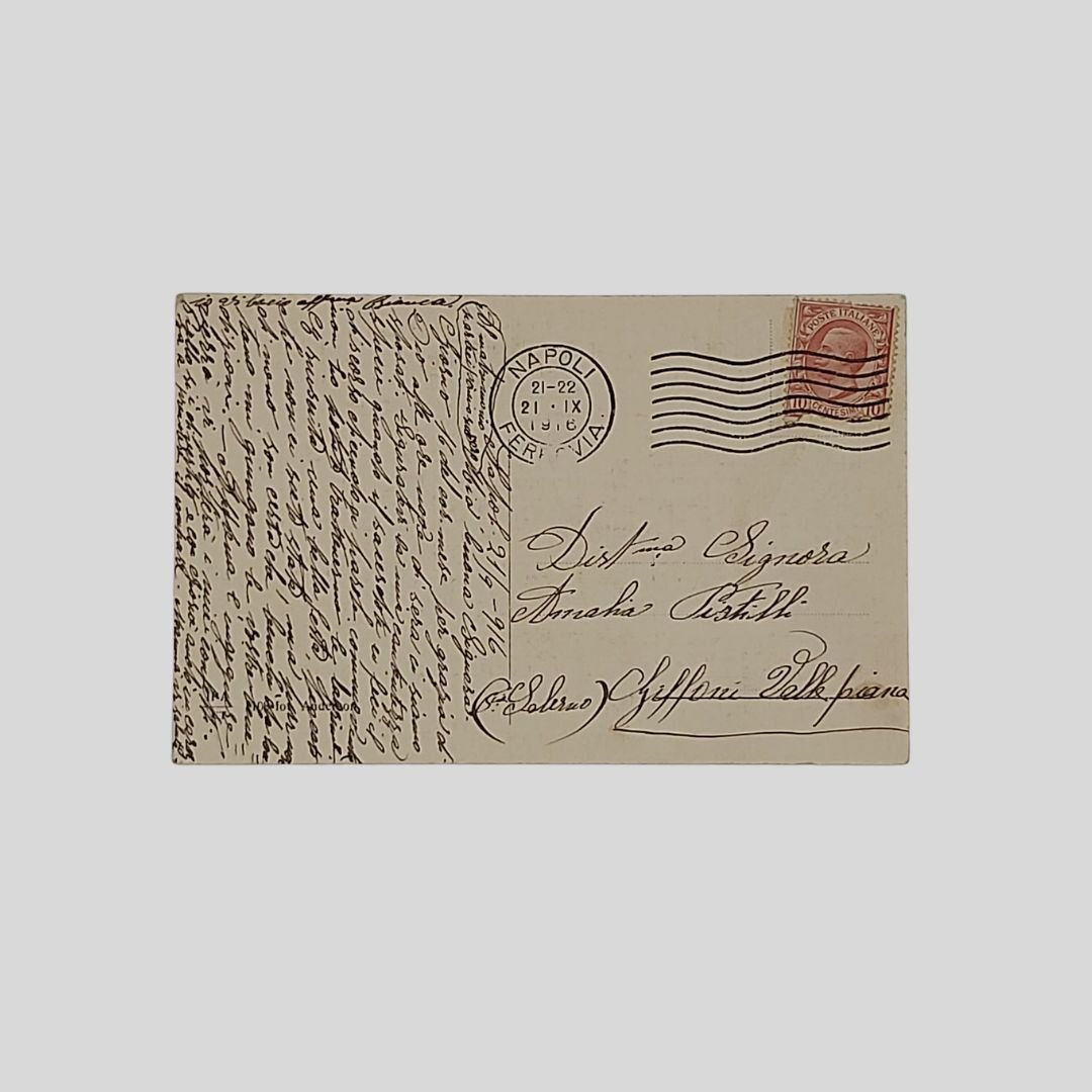 Cartolina d’epoca. Viaggiata, invio del 21/9/1916, cm 14X9. Francobollo, timbro. In buone condizioni. Da un opera di Alessandro Milesi.
