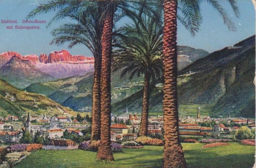 Sudtirol. Gries-Bozen mit Rosengarten.
