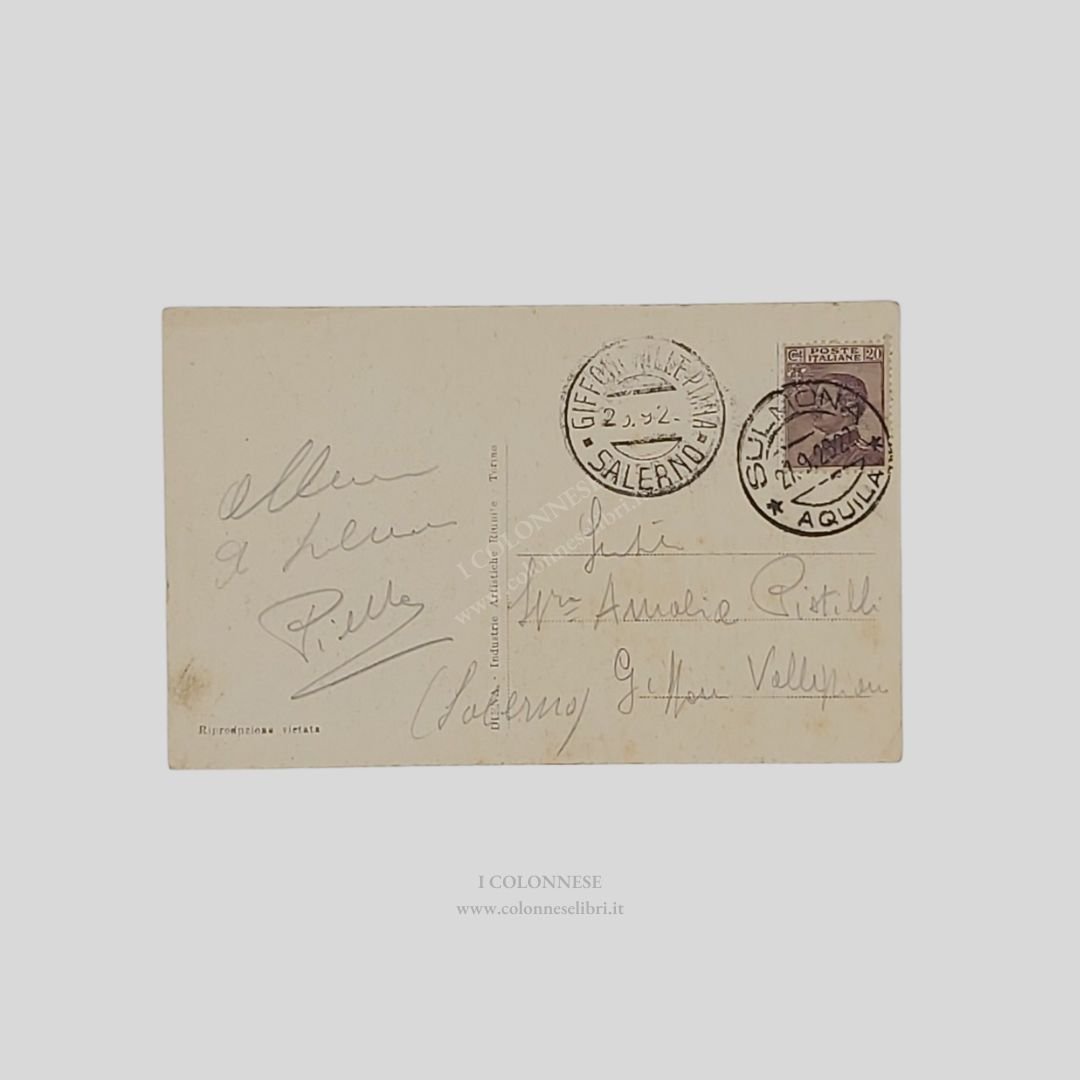 cm 13,5×8,5. Cartolina originale. Viaggiata. Francobollo, timbri, 27/9/1929. Alone del timbro al recto.