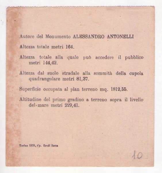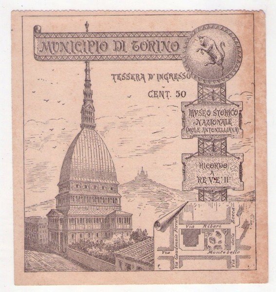 Tessera d'ingresso Municipio di Torino - Museo Storico Nazionale (Mole Antonelliana).