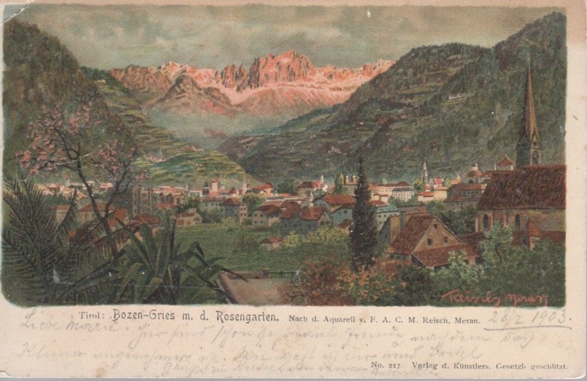 - [CARTOLINA CROMOLITOGRAFICA - F.A.C.M. REISCH - BOZEN].