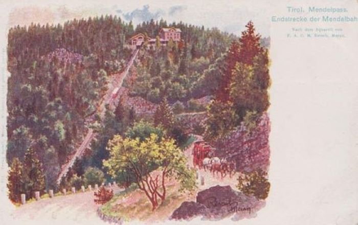 Tirol. Mendelpass. Endstrecke der Mendelbahn.