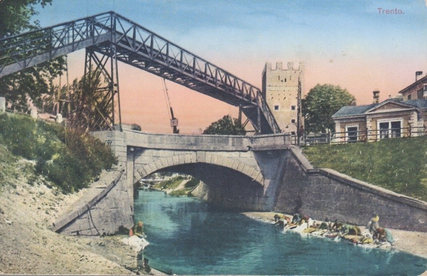 Trento - Passerella e canale dell'Adige vecchio.