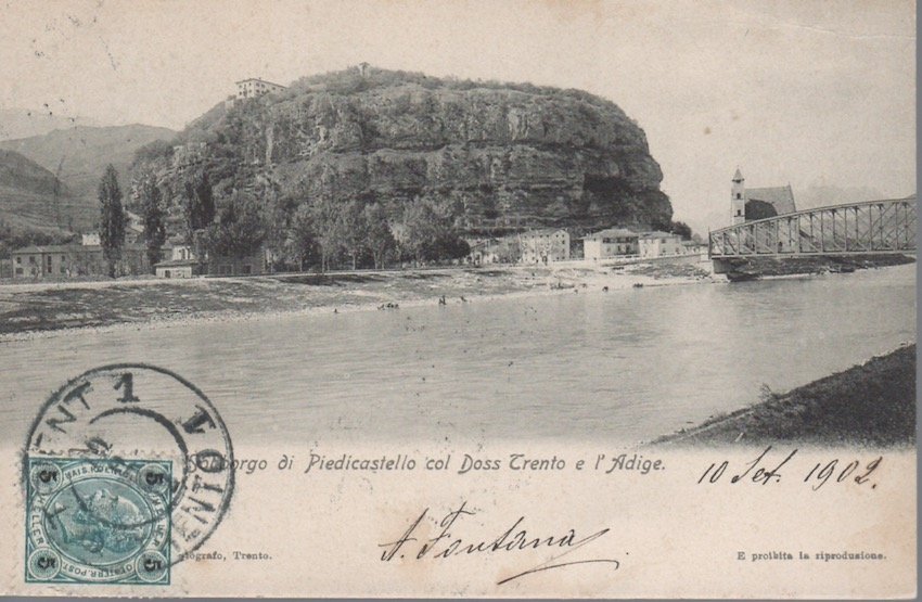 Trento - Sobborgo di Piedicastello col Doss Trento e l'Adige.