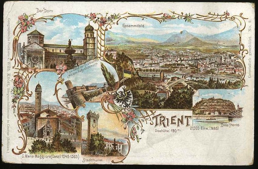 - [CARTOLINA CROMOLITOGRAFICA - TRENTO - TRENTINO].