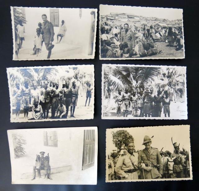 1930 circa. Sei cartoline di piccolo formato, b/n, non viaggiate. L’ufficiale fra la popolazione indigena, colonie italiane. Buono stato. .