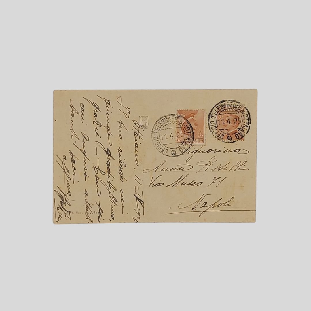 Cartolina d’epoca. Viaggiata, invio del 11/09/1925, cm 13,5×8.8. Francobolli, timbri. Lievi tracce d’uso.