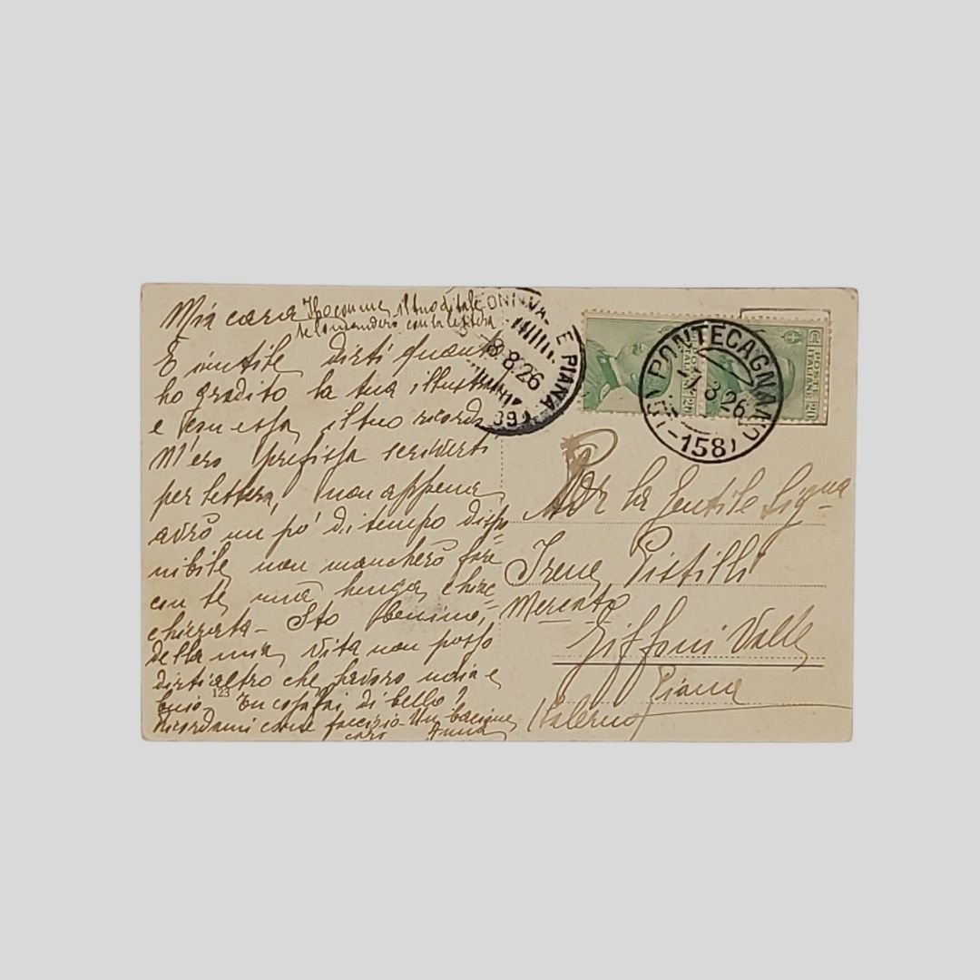 Cartolina d’epoca. Viaggiata, cm 14×9. Francobollo, timbri (8/8/1926. Lievi tracce d’uso.