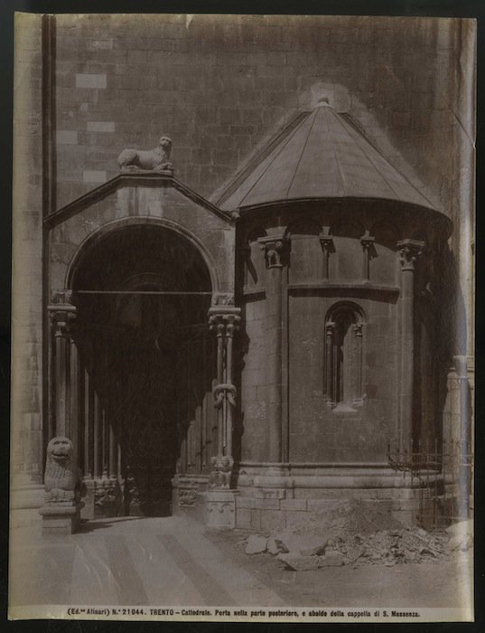 21044. Trento. Cattedrale. Porta nella parte posteriore e abside della cappella di S. Massenza.
