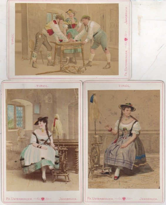 Lotto di 3 stampe all'albumina, FINEMENTE ACQUARELLATE A MANO, di misure 97x137 mm applicata su cartone coi titoli a stampa di misure 107x167 mm. Condizioni : USATO - Stato : Buono, ordinari segni d'uso e del tempo. Altre note : IL PREZZO SI RIFERISCE ALL'INSIEME DELLE TRE FOTOGRAFIE.
