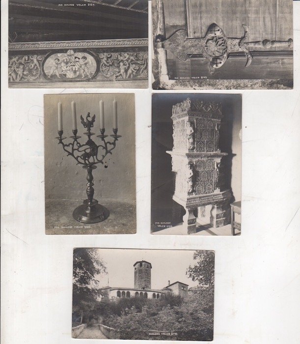 Lotto di 5 stampe alla gelatina ai sali d'argento di misure 140x90 mm. Condizioni : USATO - Stato : Buono, ordinari segni d'uso e del tempo. Altre note : IL PREZZO SI RIFERISCE AL LOTTO - NON VENDIAMO FOTOGRAFIE SINGOLE. Offriamo la serie di 5 fotografie dal titolo "Aus Schloss Valer" contrassegnate dai numeri: 2127, 2147, 2150, 2156, 2176.
