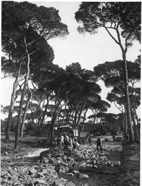 Castel Fusano, costruzione del grande viale che percorre il parco