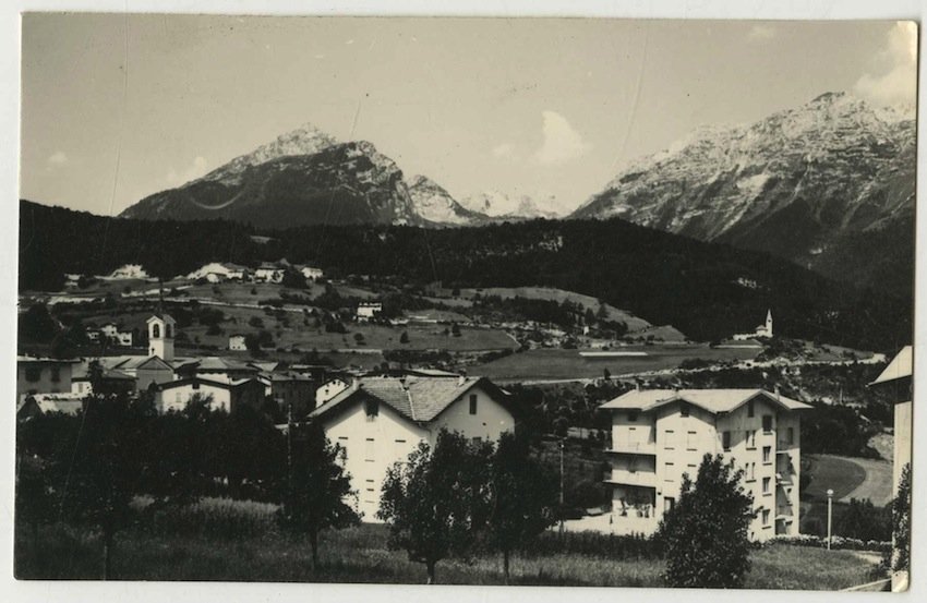 Cartolina postale fotografica alla gelatina di misure 148x95 mm con griglia al verso. Condizioni : USATO - Stato : Buono, ordinari segni d'uso e del tempo. Altre note : Veduta di Cavedago: sullo sfondo il Pizzo Gallino delle Dolomiti di Brenta. Cartolina viaggiata ad Agaggio con francobollo e timbro dell'ufficio postale di Cavedago. Al verso note manoscritte.