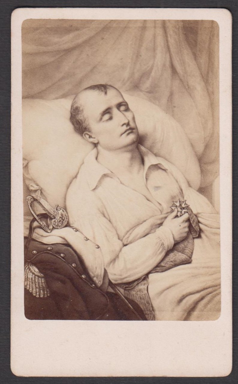 Cdv foto da un'incisione di Napoleone Bonaparte sul letto di morte by E. Neurdein