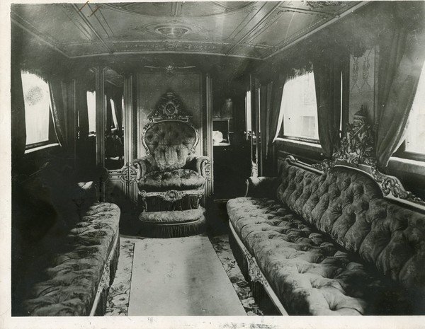 Foto in buono stato di dimensioni 18x25. Inusuale immagine dell'interno del vagone ferroviario utilizato dal Papa