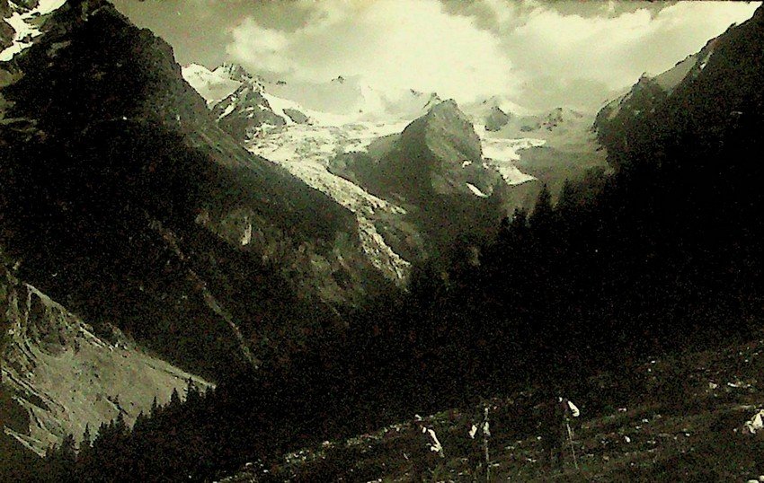 Stampa alla gelatina ai sali d'argento di misure 14x9 cm. Condizioni : USATO - Stato : Buono, ordinari segni d'uso e del tempo. Altre note : Eugenio Dalla Fior nasce a Trento il 12 giugno 1891, secondogenito di una famiglia legata all'ambiente filoitaliano, che caratterizza parte della classe dirigente locale a cavallo fra Ottocento e Novecento. Frequenta l'Imperial Regio Ginnasio di Trento e poi si iscrive alla facoltà di medicina di Torino dove si laurea nel 1916. Allo scoppio della guerra si arruola volontario nell'esercito italiano per prestare servizio negli ospedali militari posti lungo la linea del fronte. Alla fine del conflitto assume la condotta medica di Cles, dove opera generosamente fino al 1951. Per motivi di salute si sposta poi a Riva. Qui muore il 31 dicembre del 1956. La passione per le montagna inizia molto presto, assieme ad un gruppo di amici, che comprende Camillo Marchi, Vittorio Fabbro, Giuseppe Cristofolini, Ettore Grassi, Mite Ghezzer, Lino Vois, Francesco Lot, si avventura sulle Dolomiti di Brenta e di San Martino di Castrozza, fra le rocce della Presanella e i ghiacci dell'Adamello, sulle cime dell'Ortles e del Cevedale, nel Gruppo del Catinaccio e sulla Marmolada, sulle guglie della Valle di Fassa e della Val Gardena. Amico di Guido Rey, per due volte si spingerà anche in Val d'Aosta, per salire le grandi montagne e ammirare la meraviglia del paesaggio alpino.