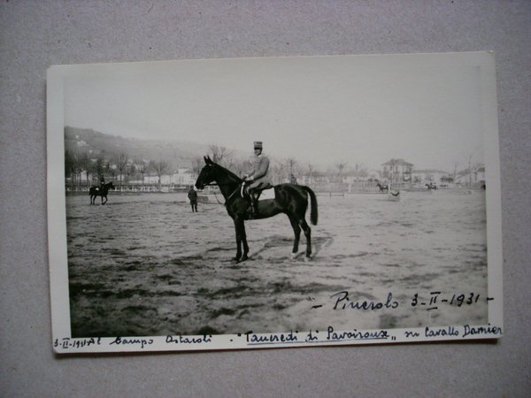 Foto Cartolina "Conte di Tancredi di Savoiroux su cavallo Damier. Pinerolo 1931"