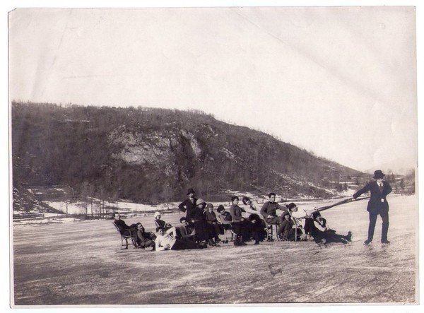 Foto / fotografia LUIGI ANGELINI con famiglia sul Laghi Gemelli ghiacciato.