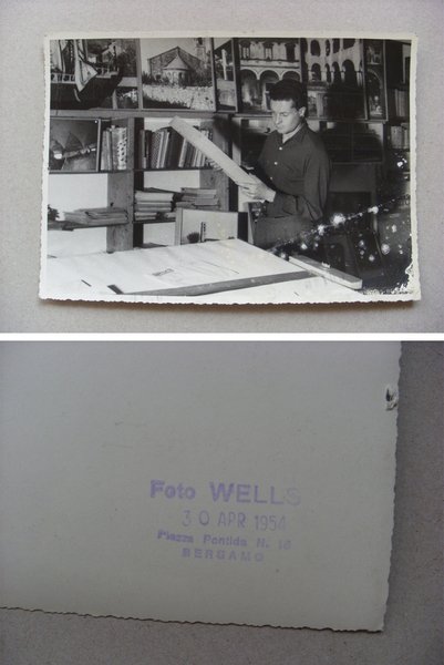 Foto / fotografia SANDRO ANGELINI nel suo studio (Bergamo). Foto Wells 1954