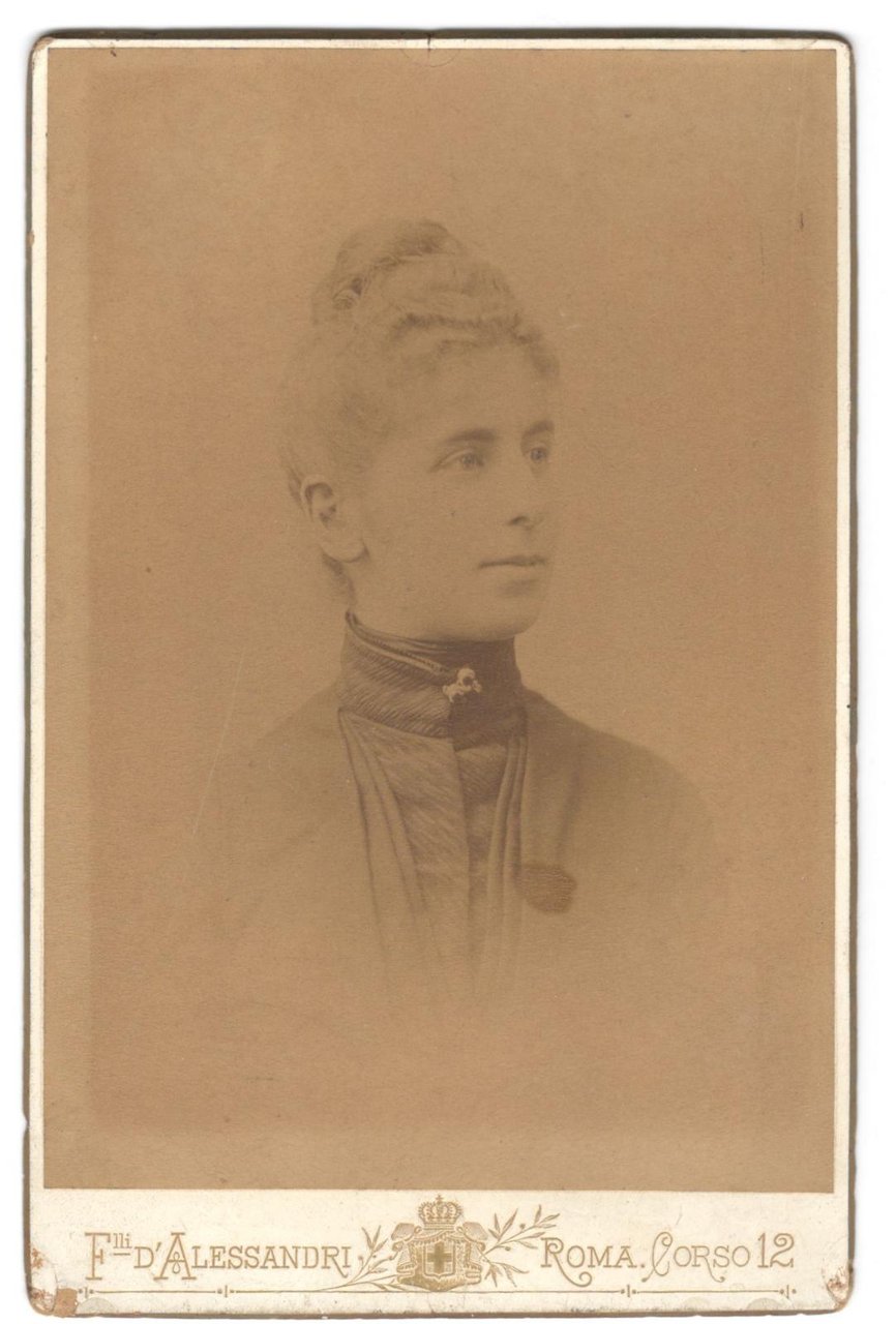 foto photo albumina cabinet card gentildonna con spilla by F.lli D'Alessandri Roma 1870 c.a.